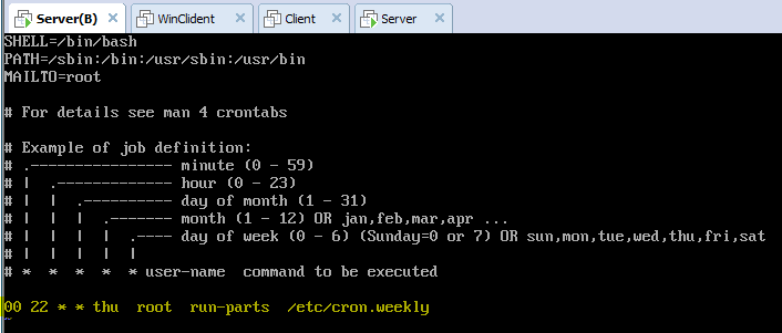 " vi /etc/crontab " 입력! Exapmle of job definition: 에서 잘 나와있 듯 각각 설명이 나온다.