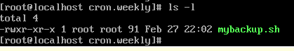 매주 작업을 해야 하니까 " cd /etc/cron.weekly " 입력을 하고 cron.weekly 디렉토리로 진입 "vi 파일명.sh" 생성한다.