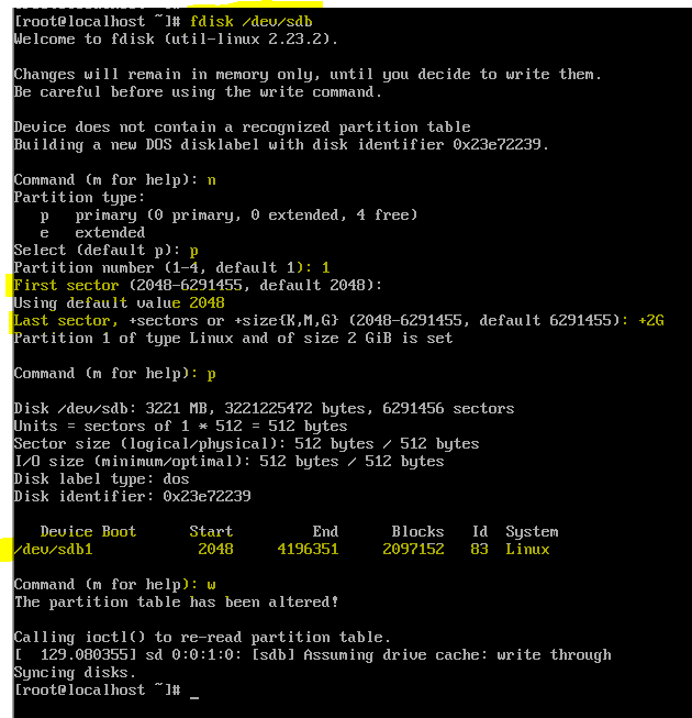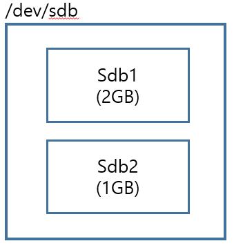 *파티션 분리할 때 주의할 점이 있다. 하드디스크 명칭은 sdb이고 파티션을 나누게 되면 sdb1 혹은 sdb2 등으로 바뀌게 된다.