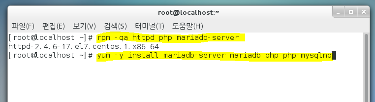 우선 Apache + ph + mariadb가 있는지 확인하고 없는걸 설치해 주는 과정입니다.