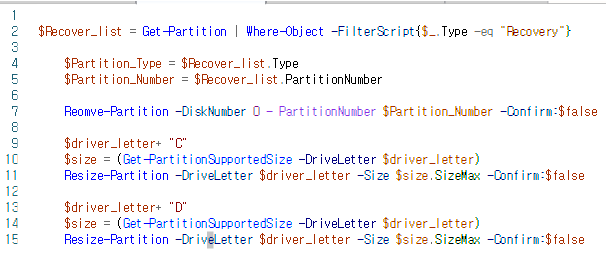 $Recover_list = Get-Partition | Where-Object -FilterScript{$_.Type -eq “Recovery”}