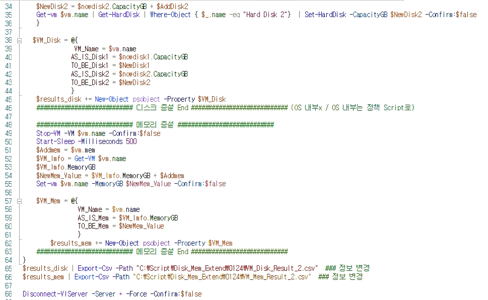 $results_disk = @() #Disk 증설 결과값 저장 AS-IS / To-Be 출력 + VM이름