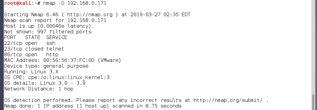 위 명령어 입력 시 열려있는 포트와 OS 정보를 알 수 있다
