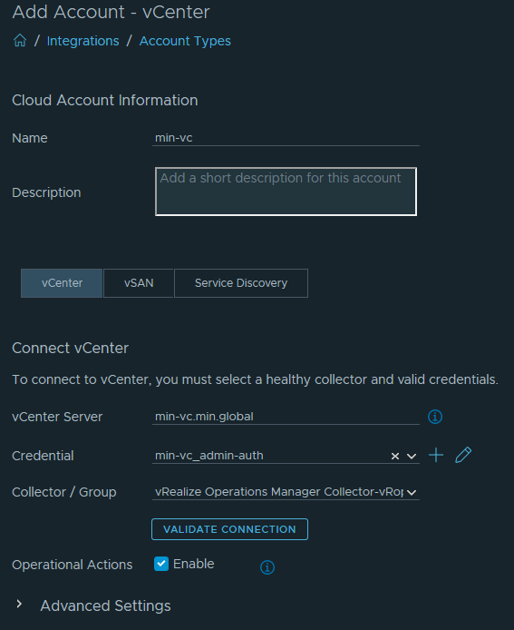 Validate Connection 클릭 후 vCenter와 연결 상태 확인