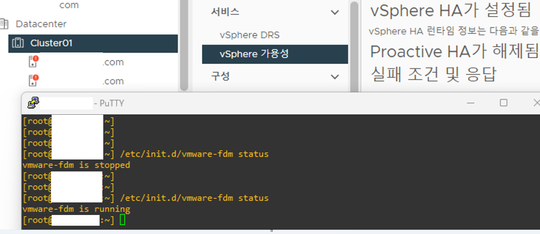 ESXi 내에는 FDM, vpxa, hostd 3개의 서비스가 존재한다.
