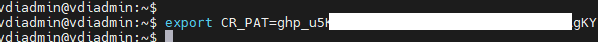 export 명령어를 통해 CR_PAT 변수로 환경변수를 지정한다.