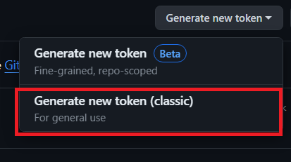 GitHub Apps -> Personal access tokens -> Tokens (classic) 클릭