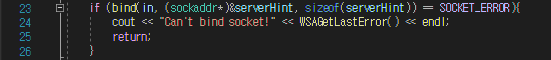 그 값이 SOCKET_ERROR 이면 Can't bind socket 문구 출력!